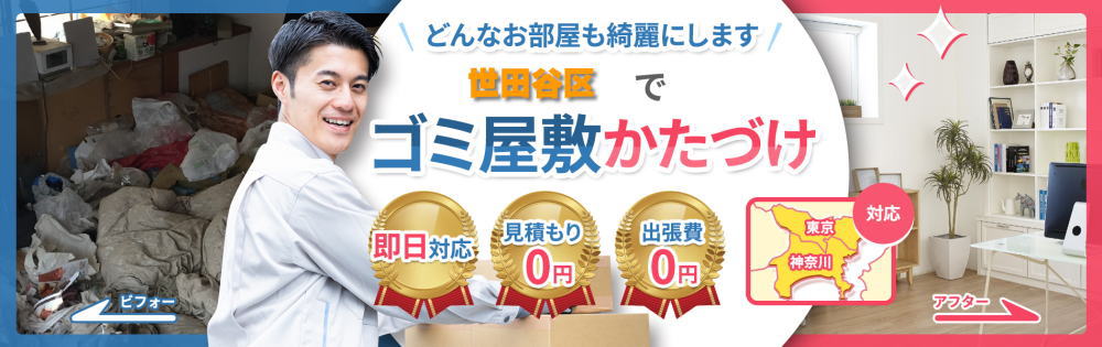 東京都世田谷区でゴミ屋敷の片付け・清掃ならお任せください。即日対応・仕分け不要で、専門スタッフが迅速かつ丁寧に対応します。家財の分別から運び出し、清掃・消臭までワンストップで実施。見積もりは完全無料、安心の明朗会計です。