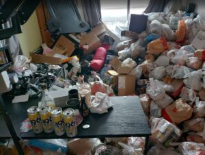 - 部屋はご本人以外が入っていない状態で、ホコリや生活感の残る荷物が散乱